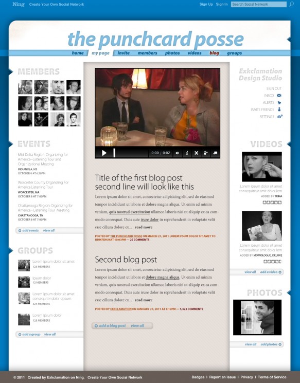 Update: The Punchcard Posse template chosen as a finalist in the Worldwide Ning Template Design Competition.