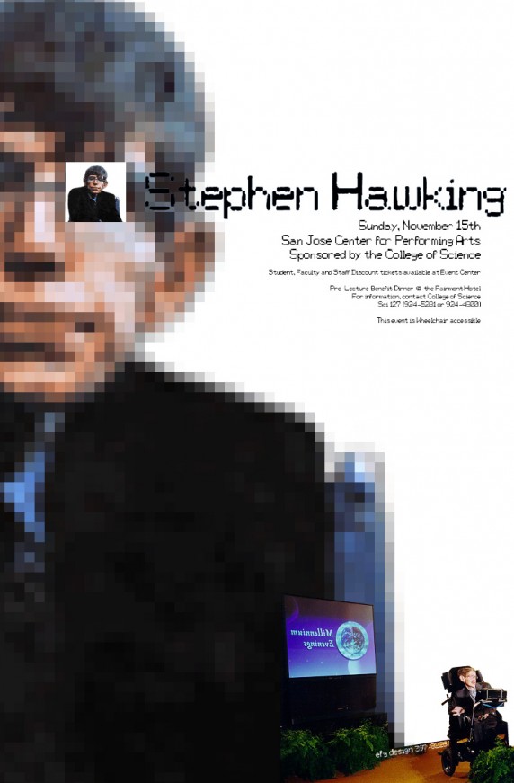 Read More →Role: Concept, Art Direction, Design Project: A simple poster advertising that Dr. Stephen Hawking would be speaking at the San Jose Center for the Performing.